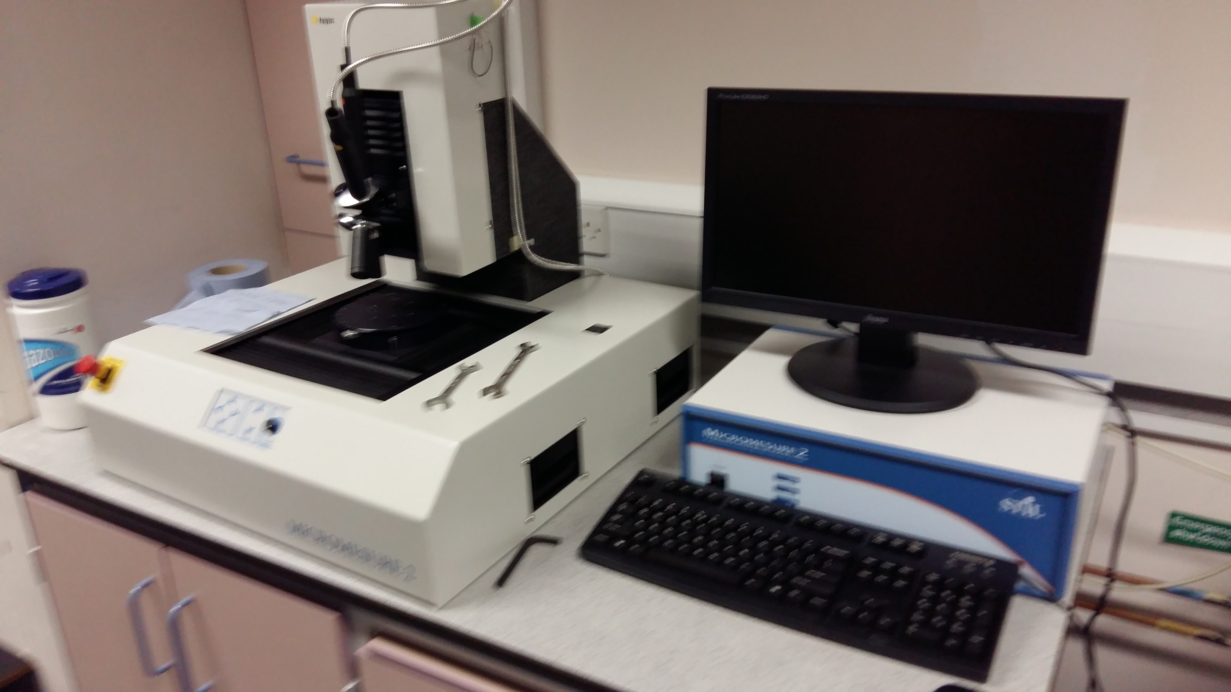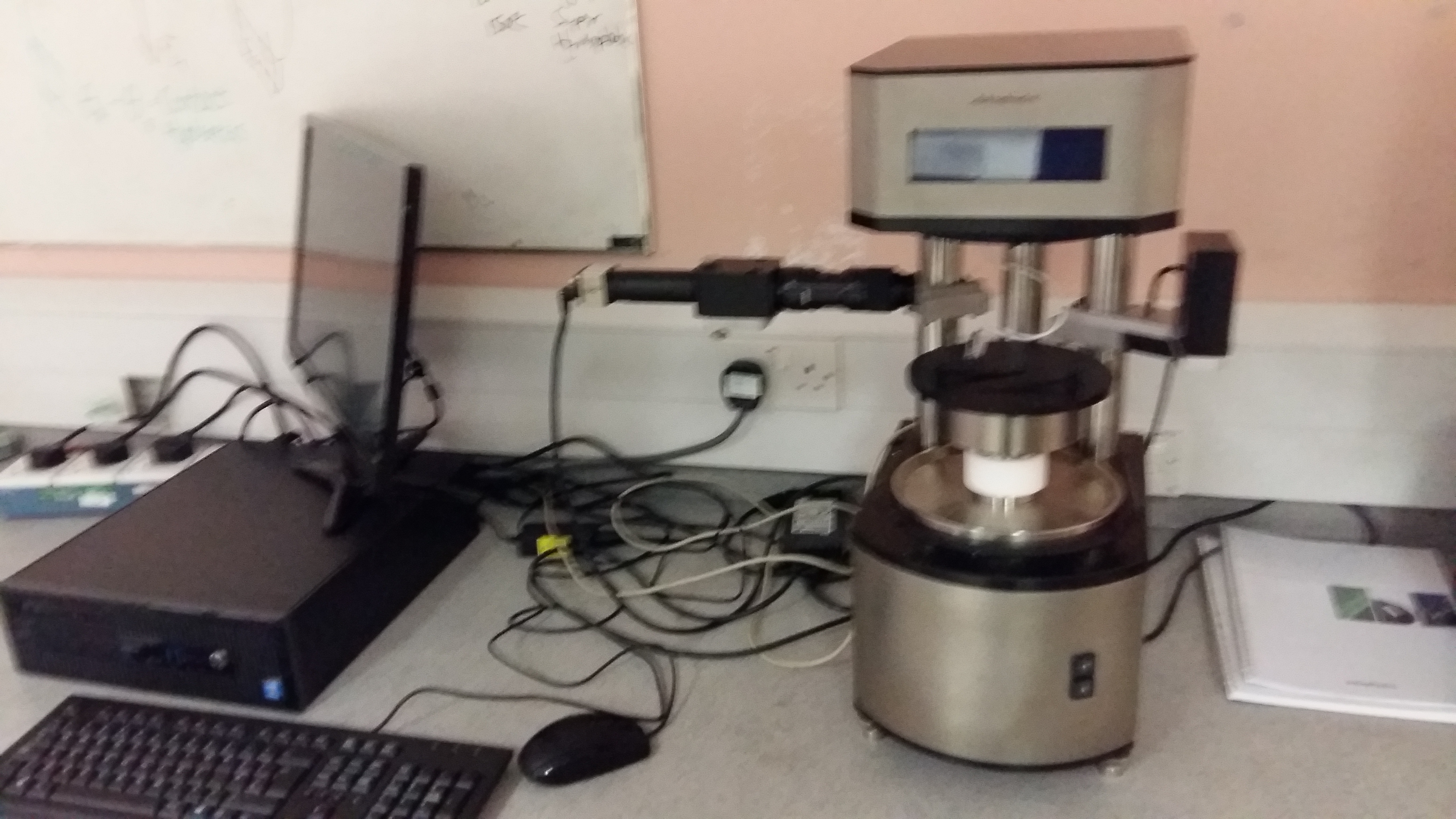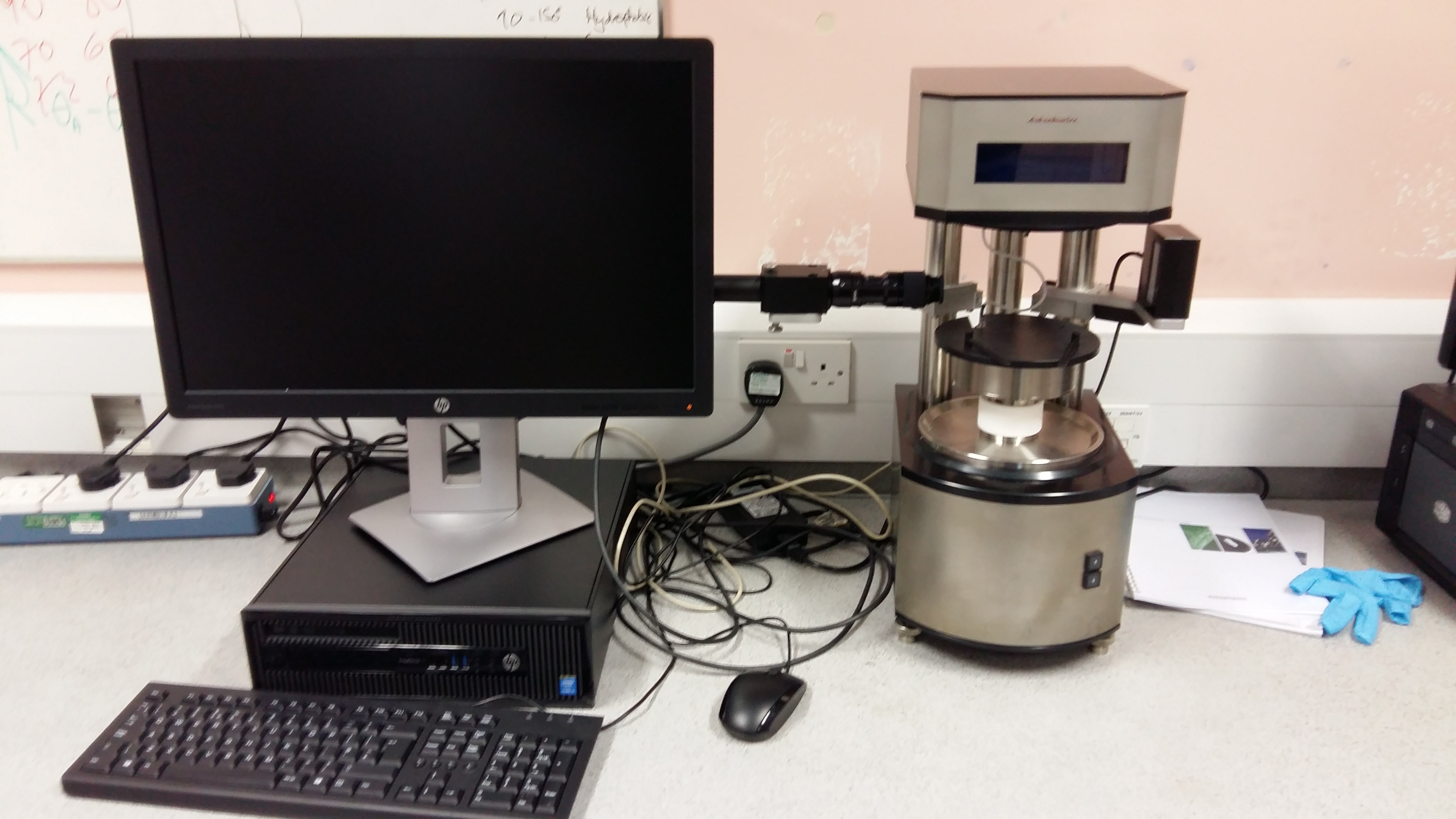 The University are proud owners of both a Dataphysics OCA 20 contact angle Goniometer as well as a Dataphysics DCAT 21 Tensiometer for studying the wetting and adhesion properties between surfaces and liquids. Both machines have a selection of options for measuring different material or liquid properties. The OCA 20, in addition to measuring static contact angles and calculating surface free energies, has a tilt stage installed. This enables the measurement of roll-off angles (the angle at which a droplet becomes mobile on a surface) and from these the advancing and receding angles, and thus the hysteresis, can be measured. The DCAT 21 Tensiometer has a range of accessories for measuring liquid properties (Wilhelmy Plate, Du Noüy Ring, density determination), solid properties (plate/film holder for Wilhelmy-style determination of contact angle, powder holder) and also has the ability to measure the adhesive force of a material.