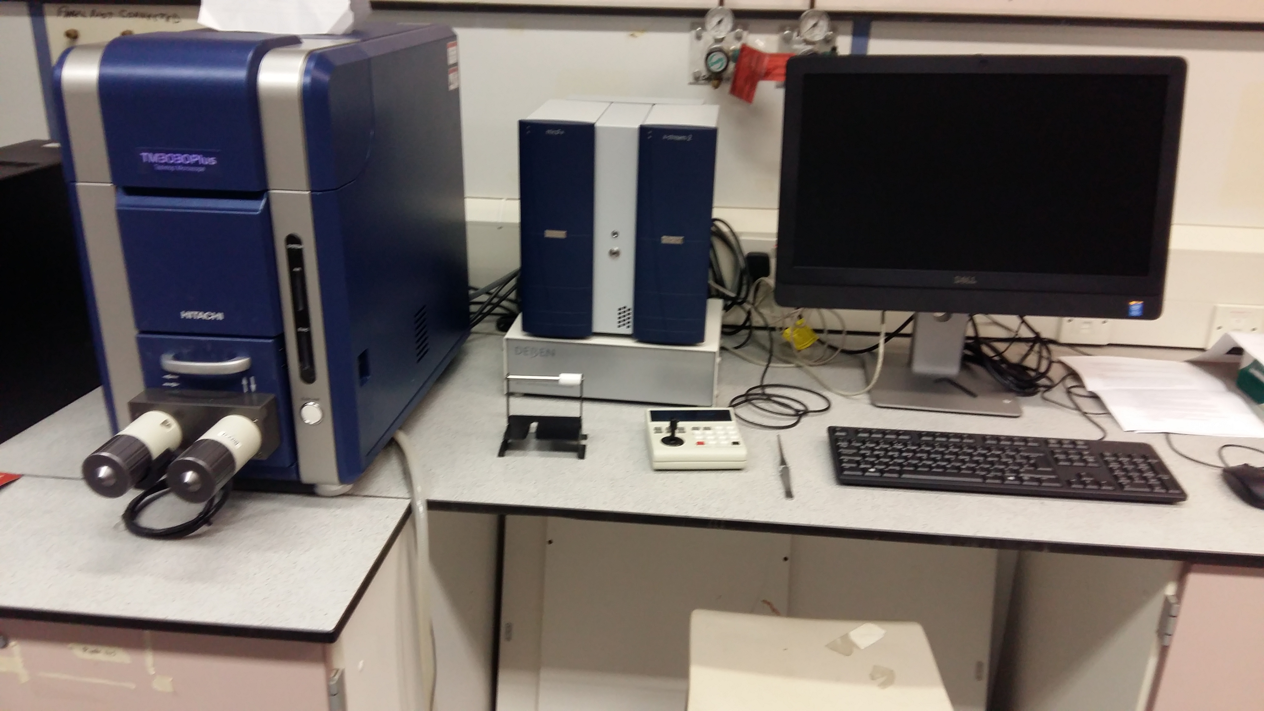 (Left) Zeiss Leo 1455VP (Right) Hitachi TM 3030 Bench top SEM