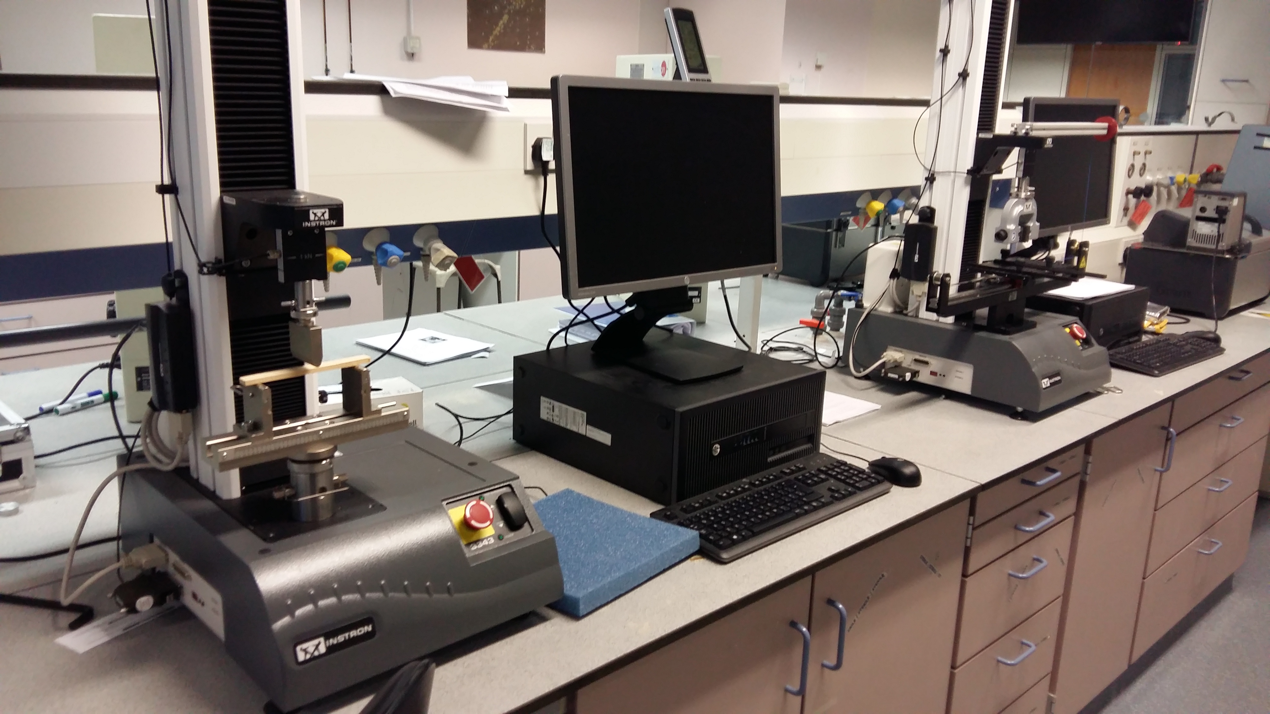 Universal testing machines are used to perform a variety of different tensile or compressive tests on materials. These include 3-point bend (i.e. flex), peel and compression. These tests can be applied to construction materials and packaging for a host of different industries including food, biomedical, semiconductor device and construction. At Chester we have two Instron 3367 and two Instron 3343 machines available for use.