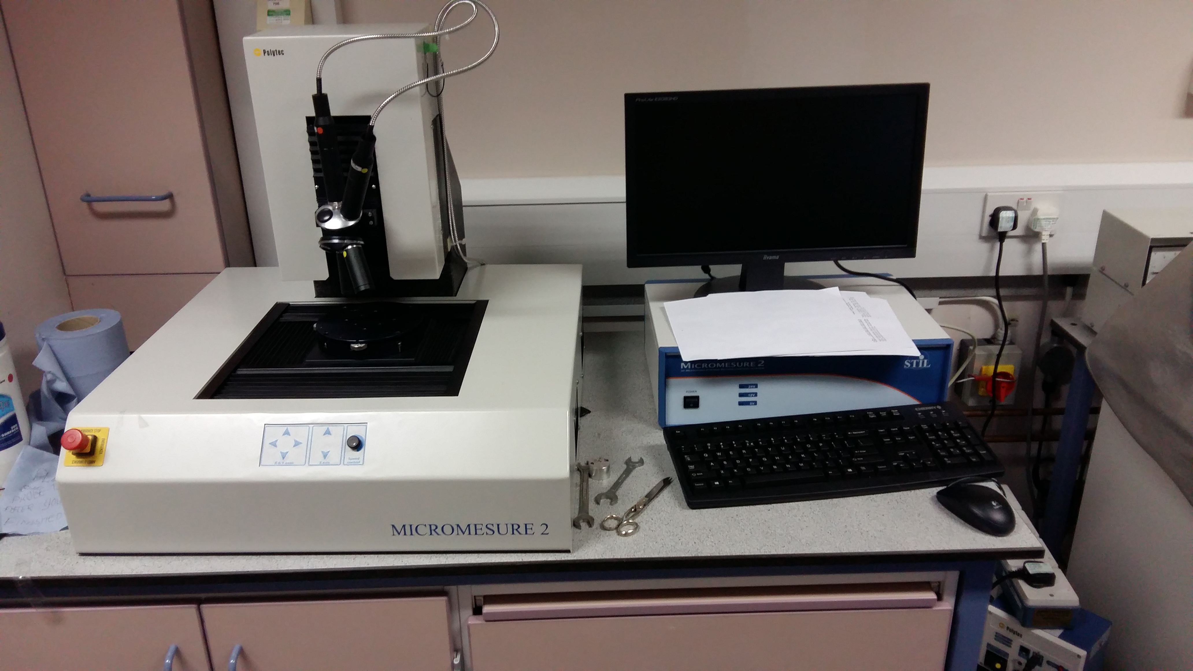 (Left) STIL Micromesure 2 optical profilometer (Right) Form Talysurf Series 2 stylus profilometer